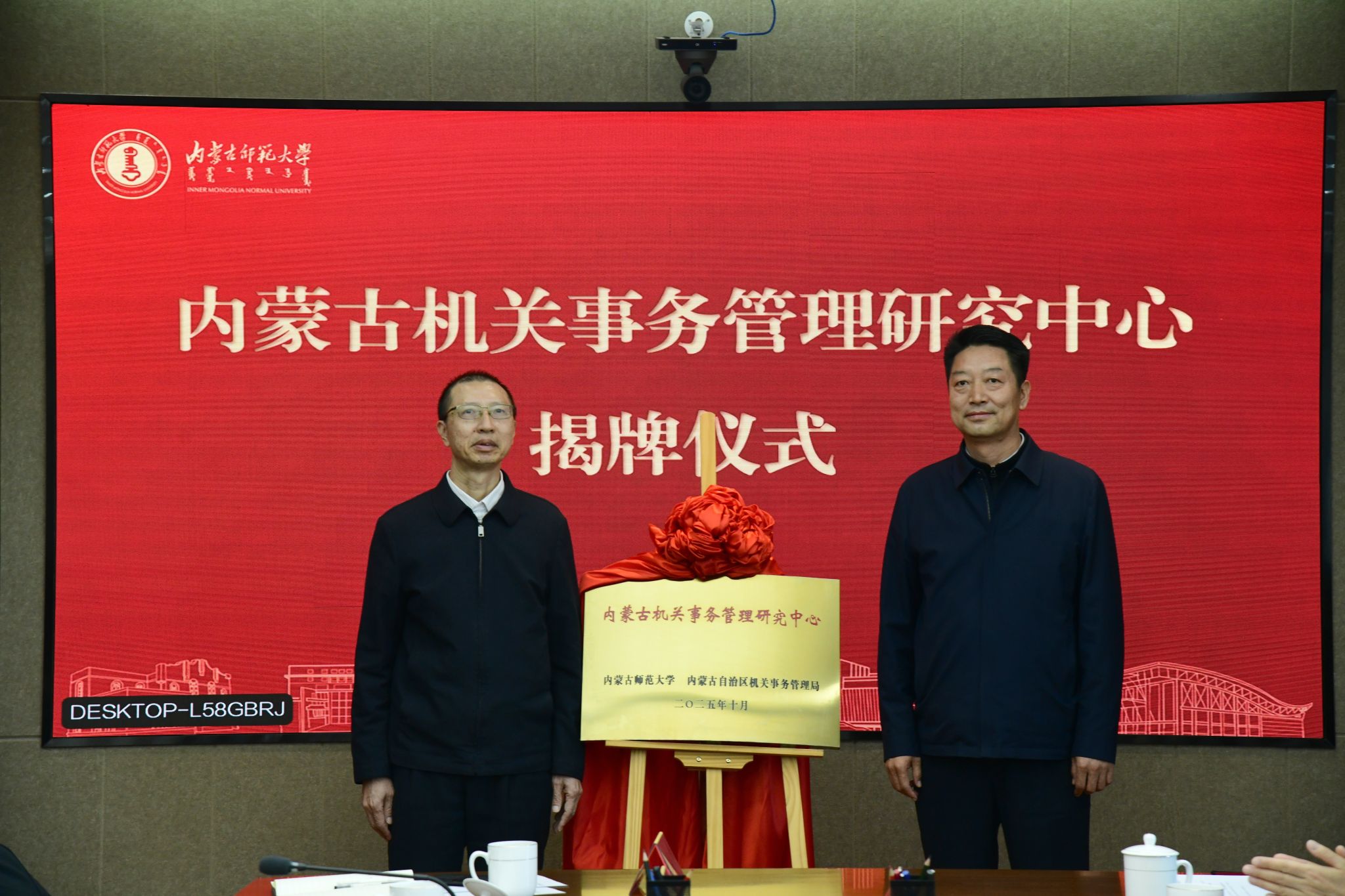 内蒙古师范大学党委委员、副校长杨玉成与自治区机关事务管理局副局长杨世军共同为“内蒙古机关事务管理研究中心”揭牌会上,双方就深入贯彻落实习近平总书记关于机关事务工作的重要指示精神,深化机关事务领域校地联建联研联培展开交流、达成共识,表示将积极建立常态化联动工作机制,充分发挥内蒙古师范大学的学科、人才、智库优势和自治区机关事务管理局的资源、平台优势,助力研究中心产出更多高水平理论成果、建成更多高水平研究实践平台、培养更多高素质人才,为服务自治区两件大事、助力打造“北疆亮丽风景线”作出更大贡献。