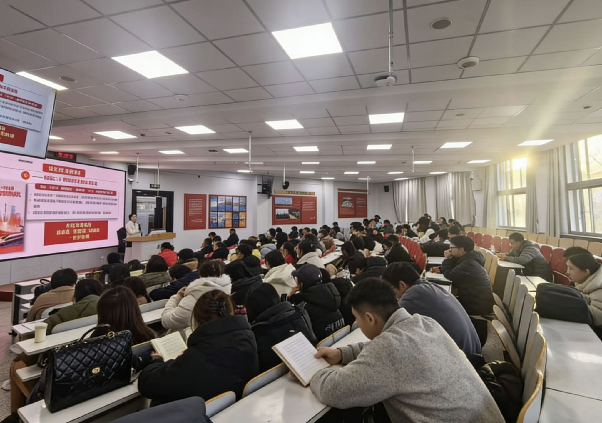 党委、旅游学院党委和经济管理学院党委在赛罕校区田楼第12公共教室联合举办了学习贯彻党的二十届四中全会精神宣讲会。我校学习贯彻党的二十届四中全会精神宣讲团成员、马克思主义学院副教授白文静进行专题辅导,各单位全体教职工以及学生代表参加报告会。